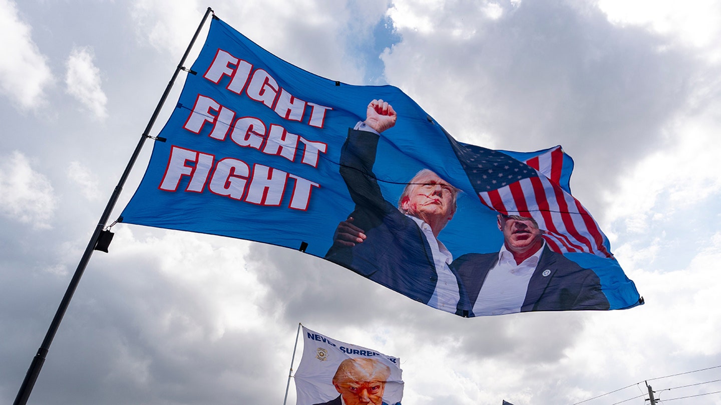 Supporters fly their flag while waiting for President Donald Trump’s motorcade to pass after arriving at Palm Beach International Airport in Florida on March 28, 2025. (IMagn)