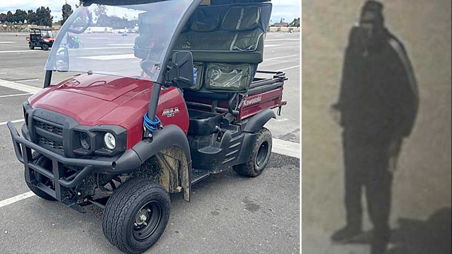 According to the Inglewood Police, around 1 p.m. 14.22, started a male suspect with a Kawasaki Mule Utv from the lake area on NFL Stadium’s grounds. In the supply vehicle two hawks were held in green containers. (Inglewood Police Department)