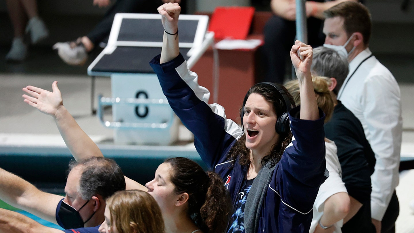 Transgender -Aatle Lia Thomas looks at after winning the women’s 500 yard freestyle during the NCAA Division in Women’s Swimming & Diving Championship in the McAuley Aquatic Center at Campus in the Georgia Institute of Technology on March 17, 2022 in Atlanta. (Mike Comer/NCAA -Photos via Getty Images)