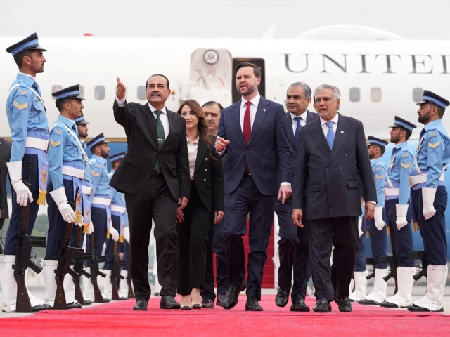 The US delegation was received by Deputy Prime Minister and Foreign Minister Ishaq Dar, Chief of Defense Forces and Chief of Army Staff Field Marshal Asim Munir and Interior Minister Mohsin Naqvi on arrival, according to the Ministry of Foreign Affairs. US Chargé d’Affaires Natalie Baker was also on hand to receive the vice president.