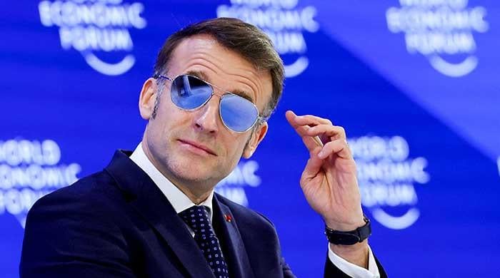 French President Emmanuel Macron attracted attention at the World Economic Forum (WEF) in Davos, Switzerland when he took to the stage wearing distinctive aviator sunglasses during his appearance on Tuesday.