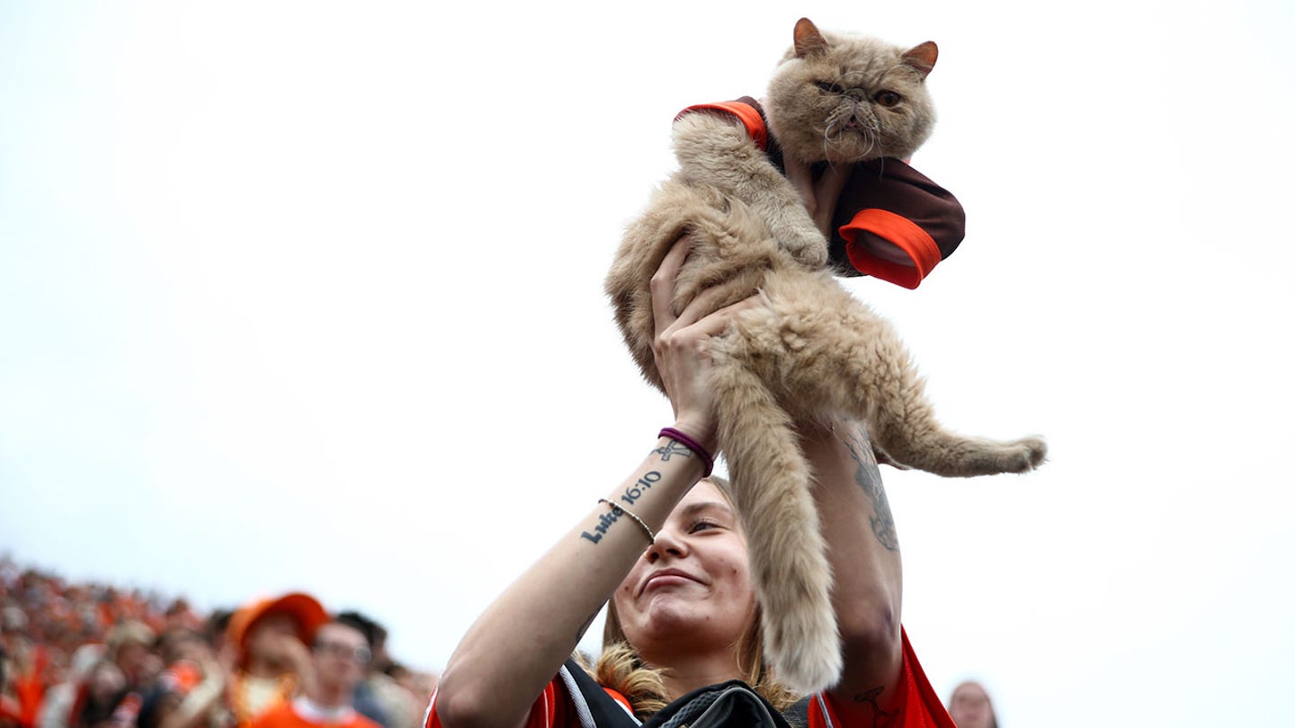 The pudge cat is hoisted during the game between Bowling Green Falcons and Lafayette Leopards at DOYT PERRY STADIUM AD AUGUST 28, 2025 IN BOWING GREEN, OHIO. (Isaiah Vazquez/Getty Images)