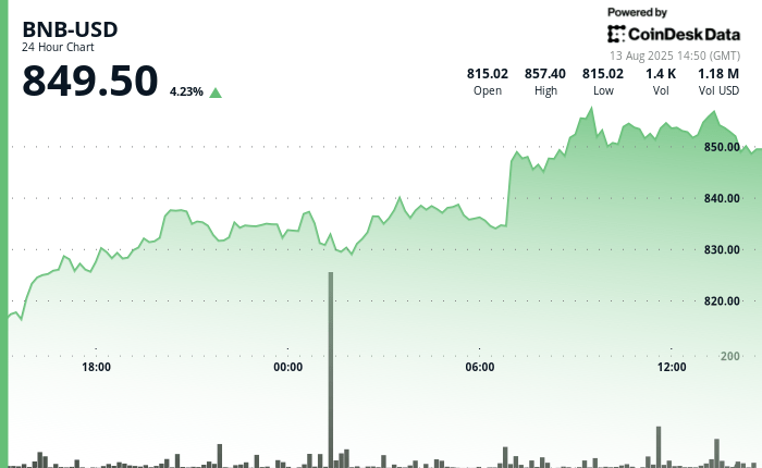 Market data showed strong purchase interest through the rally, where powerful trade activity established solid support near $ 834.40. BNB’s Advance cleared resistance to $ 839.57 and $ 853.67, and prices that were held over $ 850 most of the period remained a sign that accumulation remained in play even when momentum began to cool off.
