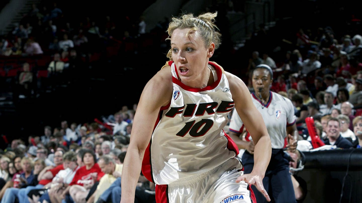 Jackie Stiles of the Portland Fire drives to the basket during a game against Detroit Shock 15 June 2002 at Rose Garden in Portland, Ore. (Sam Simplcich/Wnbae/Getty Images)