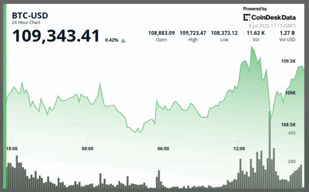 Bitcoin rose to $ 109,343 on July 9, an increase of 0.8% over the previous 24 hours, according to Coindesk Research’s technical analysis model.
