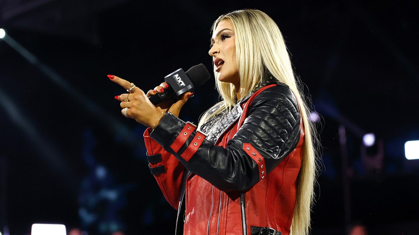 Izzi Dame speaks during NXT at the WWE Performance Center on January 13, 2026 in Orlando, Florida. (Kevin Sabitus/WWE via Getty Images)