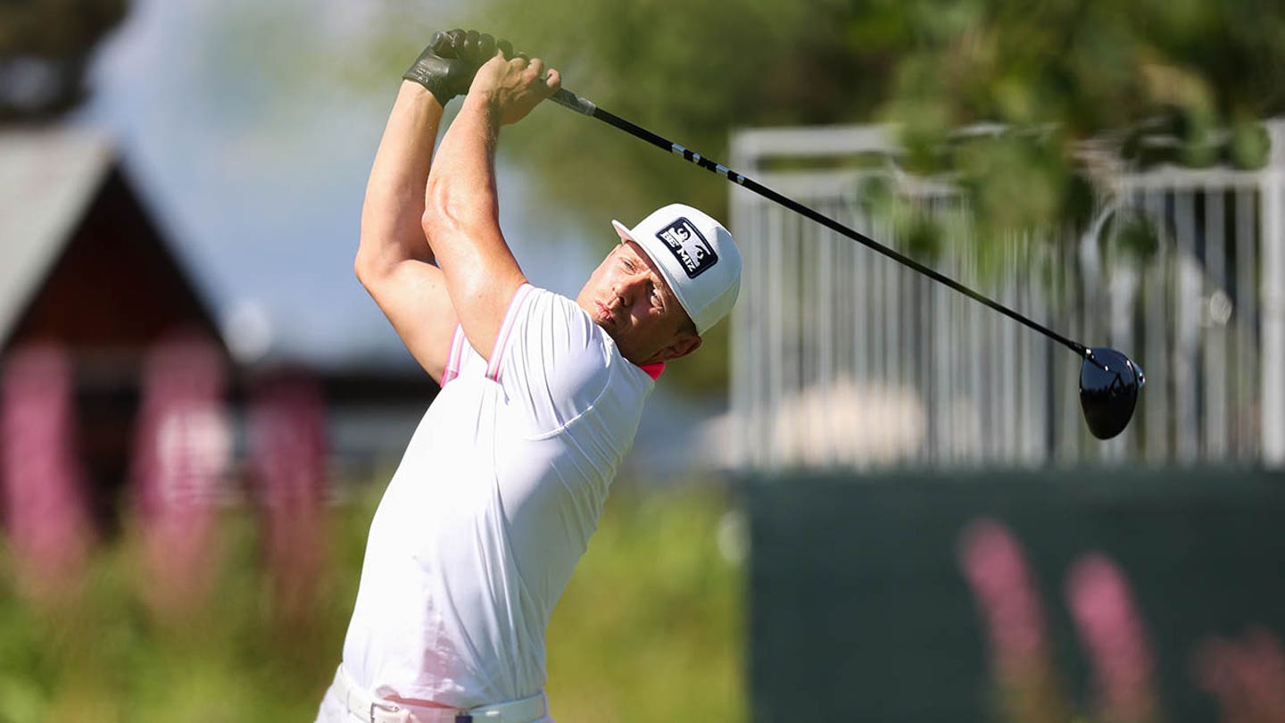 WWE WRESTLER The Miz hits his tee shot on the 10th hole before the American championship in American Century at Edgewood Tahoe Golf Course 11 July 2024 in Stateline, Nev. (Isaiah Vazquez/Getty Images)