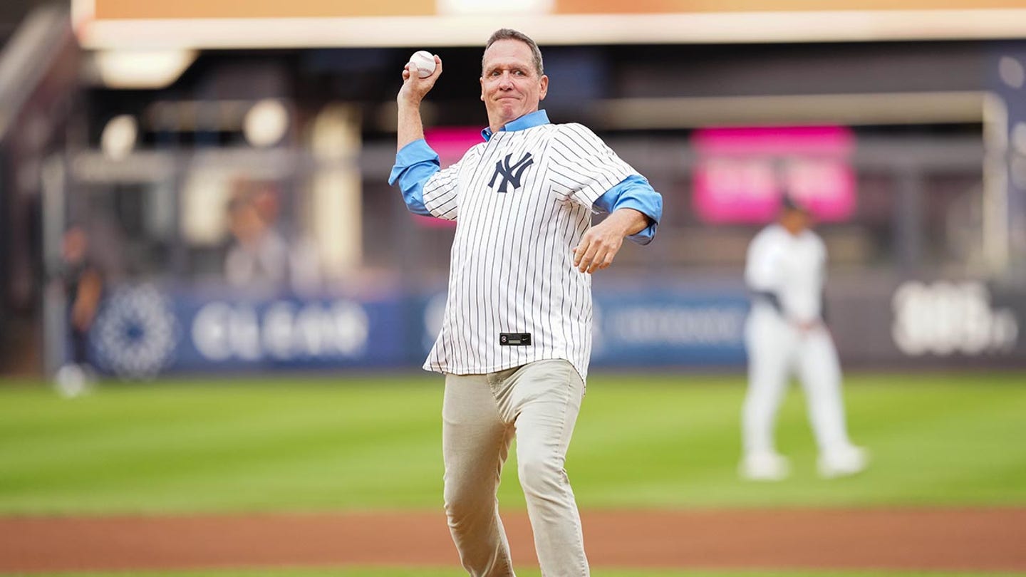 David Cone throws the ceremonial first pitch ahead of the game between the New York Mets and New York Yankees at Yankee Stadium on Tuesday, July 23, 2024 in New York, New York. (Mary Decicco/MLB photos via Getty Images)
