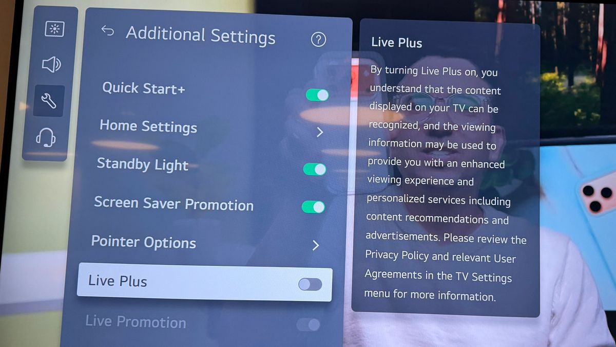 Live Plus is LG’s version of ACR and, as LG describes it, when you enable it, “the content displayed on your TV can be recognized and the viewing information can be used to provide you with an enhanced viewing experience and personalized services, including content recommendations and advertisements.”